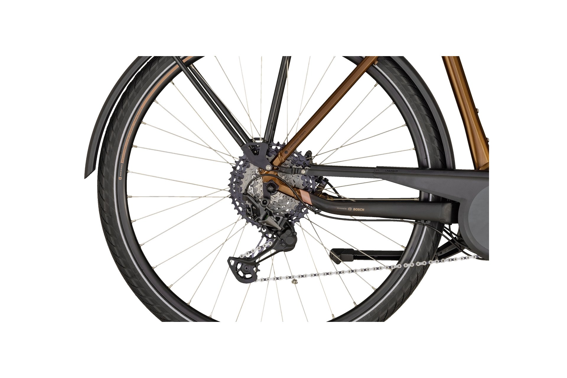Ordentliche 85 Nm Drehmoment bringt der Bosch Performance Line CX Gen4 Mittelmotor des Bergamont E-Horizon Elite Gent auf den Boden. Dabei meistert das kleine Kraftpaket auch lange Anstiege. In Kombination mit den 28″ Laufrädern geht es also zügig voran, egal ob in der Ebene oder am Berg. Dafür sorgt der großzügige 36 V – 14 Ah – 500 Wh Intube-Akku. Ein weiteres Highlight ist der schöne Diamant Rahmen aus Aluminium. Sportive Herren werden daher absolut ihre Freude haben.