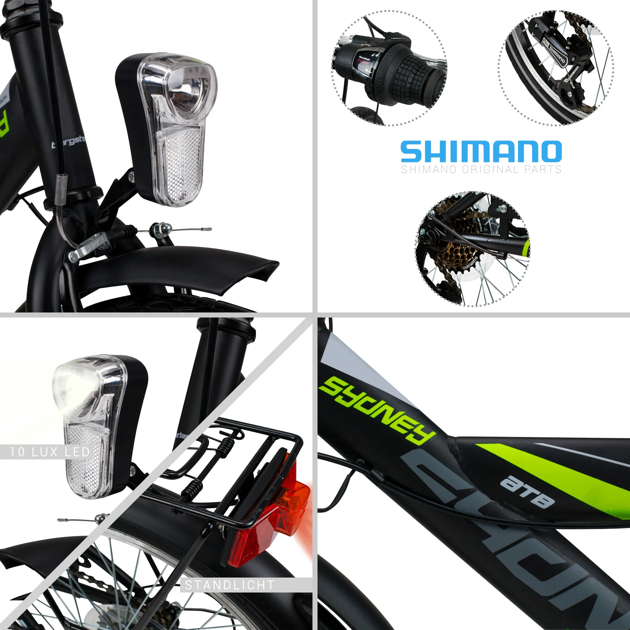 Mit einer Rahmenhöhe von 31 Zentimetern richtet sich Sydney an Kinder mit einer Körpergröße ab 1,15 Metern. Der innovative Hi-Ten Stahlrahmen ist extrem robust und nimmt auch stärkere Beanspruchungen kaum übel. Das Fahrrad verfügt über einen geschlossenen Kettenkasten, der zu einer höchstmöglichen Sicherheit beiträgt. Ein rasanter Hingucker ist zudem der topaktuelle MTB-Lenker mit den farbigen Bar-Ends. Er macht aus dem Kinderfahrrad einen trendstarken Blickfang und verhindert mit seiner auffallenden Optik Verwechslungen.