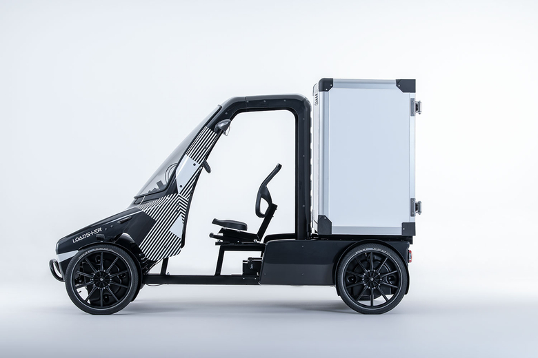 Vier Räder, Lenkrad, Sitz mit Rückenlehne, eine große Transportbox mit Rolltor und kompletter Kabine – der Loadster Delivery Max ist kaum noch als E-Bike zu erkennen. Der Loadster kombiniert die Vorteile eines kleinen Stadtautos mit denen eines E-Bikes. Standfest, agil und voll elektrifiziert, ist der Loadster genau das richtige Fahrzeug für lokale Lieferdienste, Handwerker oder Vor-Ort-Service Anbieter