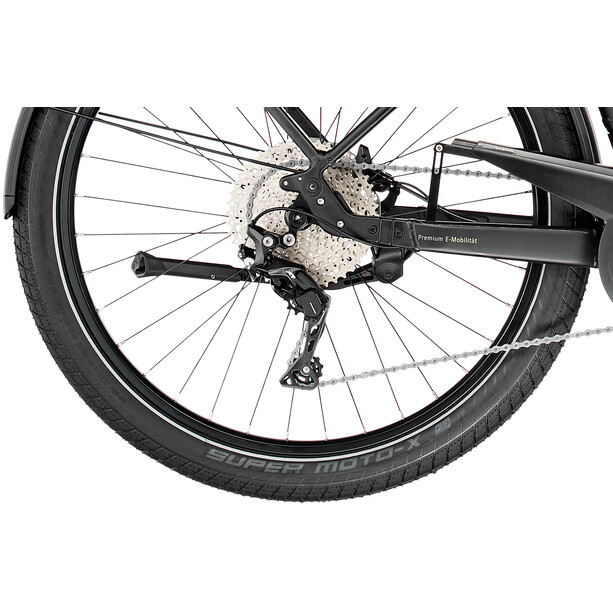 e-bike manufaktur 13ZEHN Trapez Disc Performance CX Gen4 625Wh schwarz, Unterstützt werden Sie auf Ihren Touren vom High-End-Antriebssystem der BOSCH Performance Line CX mit 625 Wh-Akku und Nyon-Display. Sportlich unterwegs ist man dank einer zuverlässigen und robusten Shimano Deore XT 11-Gang Schaltung und der pfeilschnelle Bereifung Schwalbe Super Moto-X.