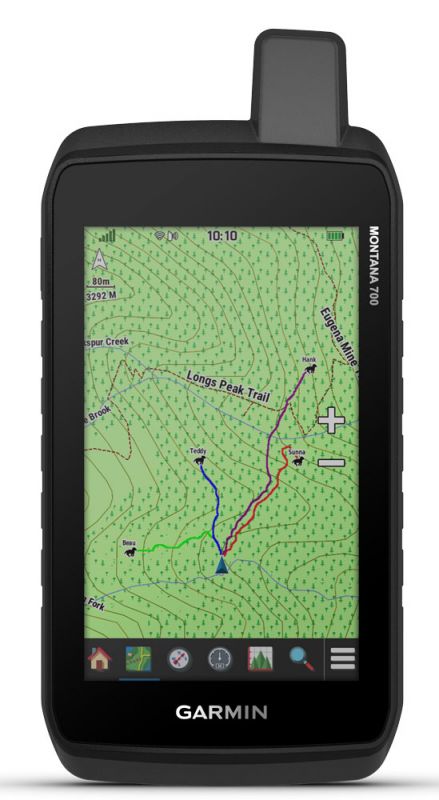 Dieses robuste, wasserbeständige Handgerät wurde nach US-Militärstandards getestet. Es bietet einen 5 Zoll großen Touchscreen, der auch mit Handschuhen bedienbar und 50 % größer ist als bei vorherigen Montana-Modellen.
