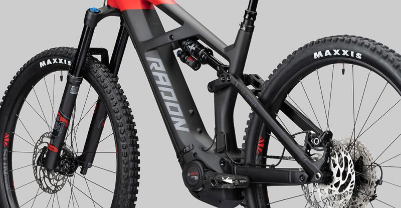 Der RENDER Rahmen ist ebenso ein optischer Leckerbissen wie Herberge für allerlei technische Finessen. So hat der Frontrahmen aus Carbon einen Verbindungssteg zwischen Ober- und Unterrohr, der sowohl als Designelement an einen Flügel erinnert als auch in technischer Hinsicht die Steifigkeit erhöht und gleichzeitig als Aufnahme für den Dämpfer fungiert. Die Dämpferverlängerung auf der anderen Seite fungiert gleichzeitig auch als Teil der Wippe und ermöglicht so einerseits die einzigartige Kinematik und trägt zudem zur sehr hohen Stabilität des Hinterbaus bei. Die 625 Wh große Batterie sitzt integriert im Unterrohr in einer Patrone, die den wackelfreien Sitz gewährleistet und außerdem die intern verlegten Züge seitlich führt und somit für Klapperfreiheit und Ordnung sorgt.
